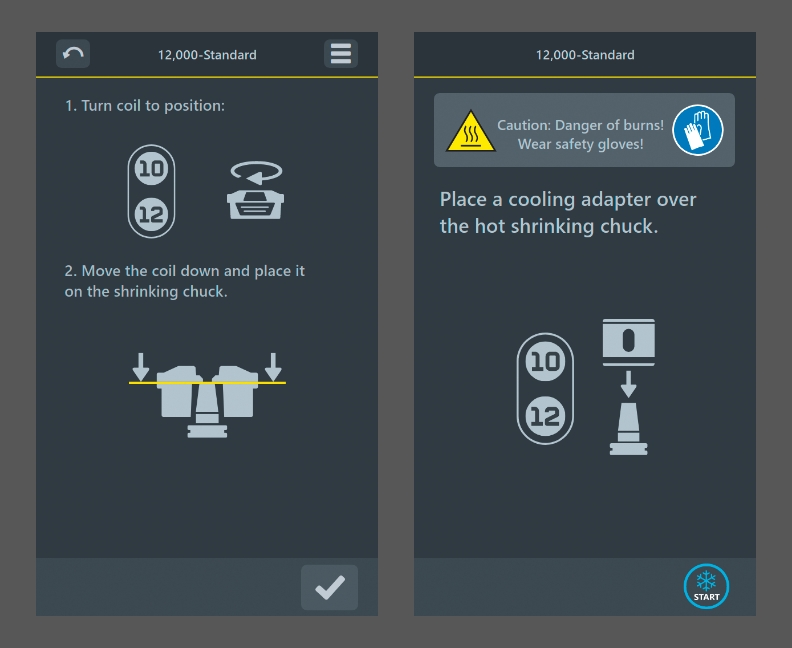 在 »pilot« 软件中可计算每个热缩配合卡盘的每个加热过程。 此外,根据允许的加热过程,还可存储警告与磨损极限值。