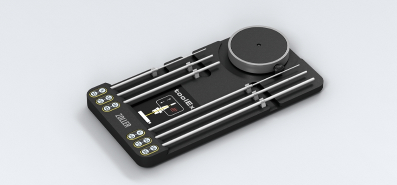 The »pilot« software scan function, combined with the hand scanner, enables the reliable selection of the appropriate shrink parameter by scanning the holder number on the shrink-holding fixture. Regardless of the manufacturer, all shrink-clamping chucks with a DataMatrix code (e. g., ZOLLER »idLabel«, ZOLLER »idChip«) are supported.