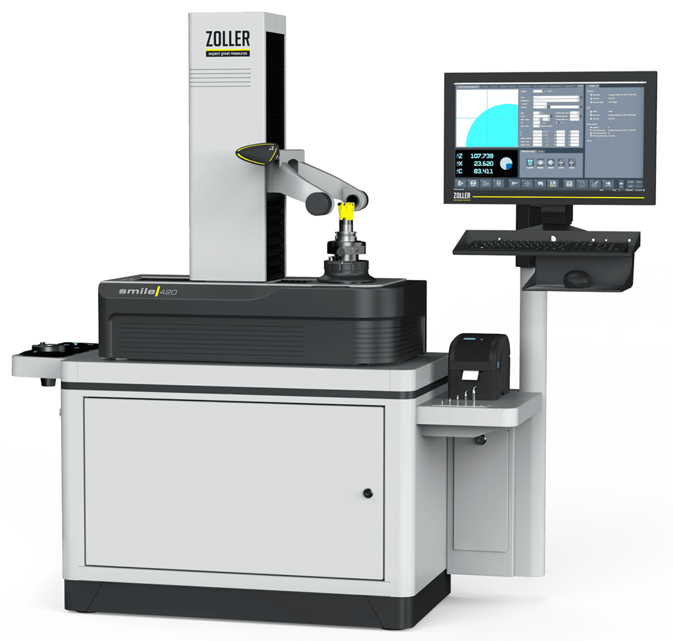 Everything about »smile 420« is designed for durability and continuous use. Whether large-scale production, medium-sized operation or small production - this presetting and measuring machine keeps up with your cycle. Even right next to the CNC machine.