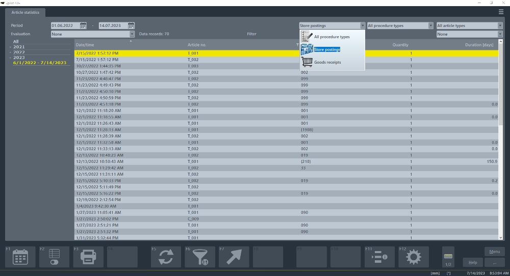 Le statistiche articoli di ZOLLER vi permettono di analizzare comodamente il consumo di utensili sulla base delle registrazioni in magazzino. Con l'aiuto di "liste di successo/flop", potete identificare i vostri "prodotti top", che hanno un elevato potenziale di ottimizzazione, ed evitare invece i "prodotti flop", che sono posizionati come capitale morto nei vostri magazzini.