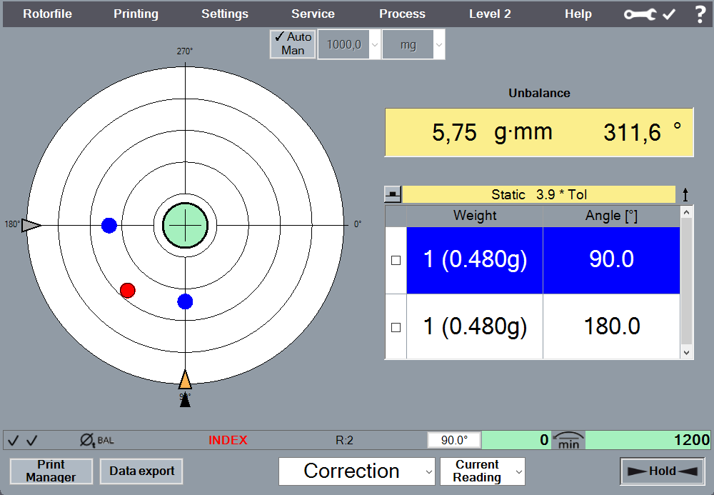 Balanssızlıklar ağırlıklar takılarak veya çıkarılarak dengelenir (örn. balans vidaları). Mevcut ağırlık setlerini belirleme imkanı dahil.